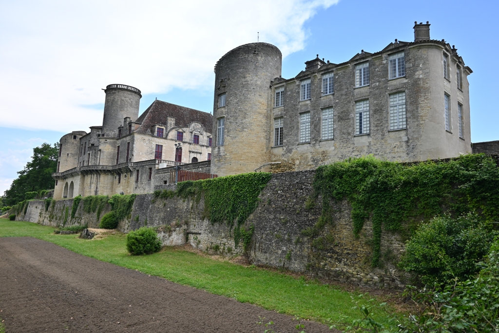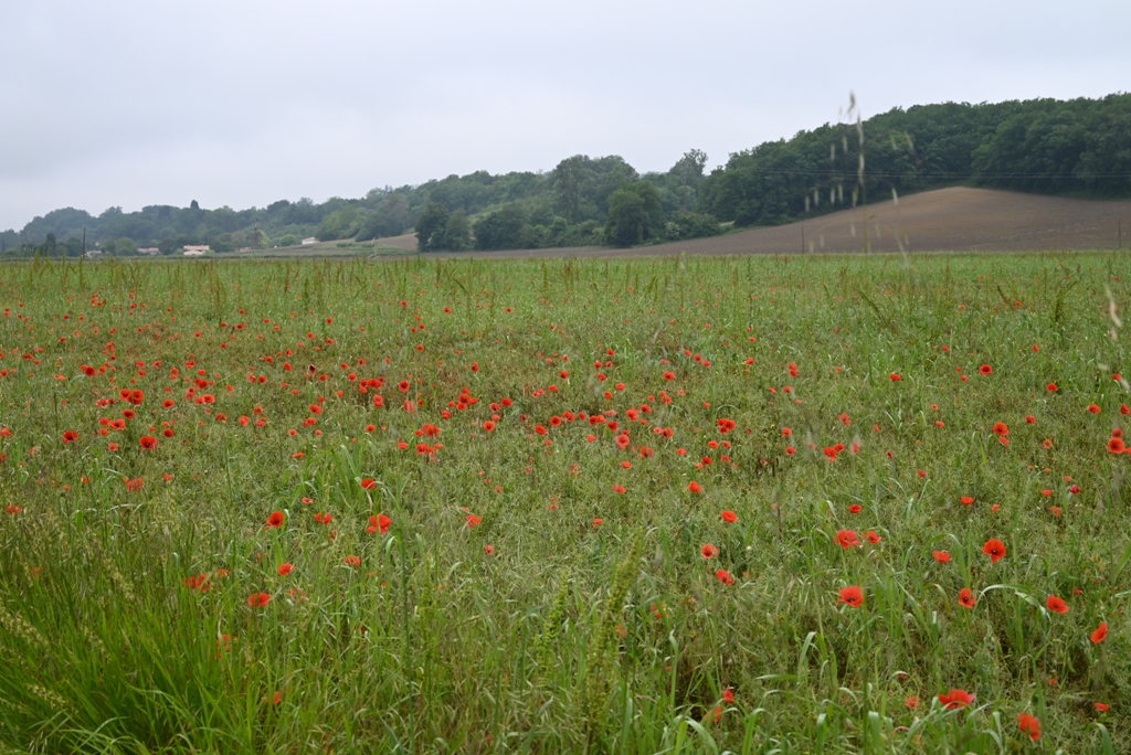 Je finis en voiture avec une agricultrice qui fait le tour de ses terres pour s’assurer qu’il n’y a pas trop de casse. Elle me parle de ses difficultés, les finances, les investissements, les normes, etc. Elle me dépose au pied du château de Duras. Merci.