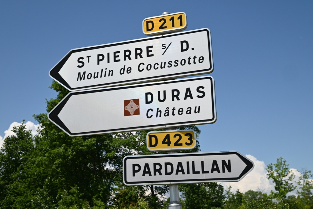 le soleil est revenu. Je fais le tour de la ville. Je croise Marguerite Duras (1914–1996), écrivaine, née Marguerite Donnadieu, dont le nom de plume est une référence à la ville de Duras.
