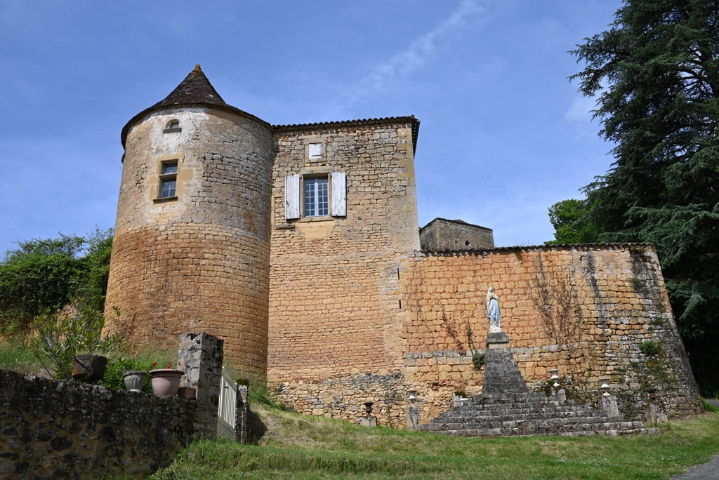 Je passe devant le château de Bannes situé sur la commune de Beaumont-du-Périgord. Le nom du château doit venir du mot banne qui veut dire en celtique et en patois du Périgord, corne, pointe.