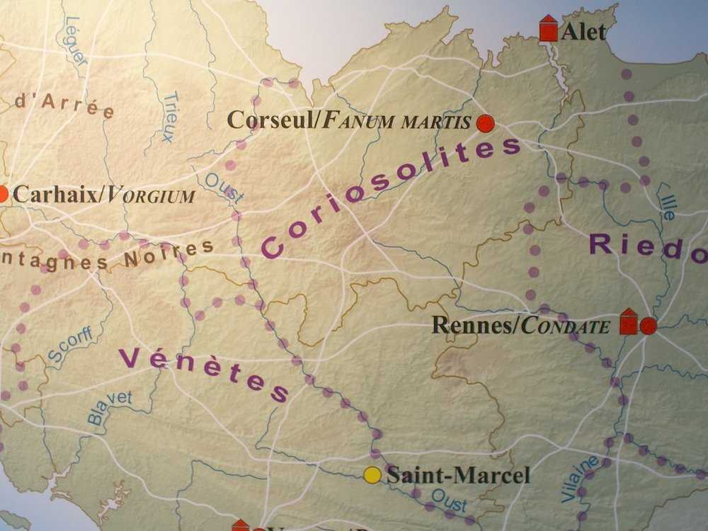 La voie relie Angers, Juliomagus, à Carhaix, Vorgium.